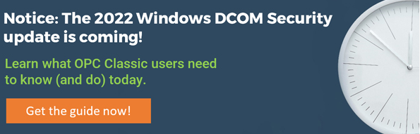 Microsoft wird im Jahr 2022 ein Windows DCOM Sicherheitsupdate veröffentlichen, welches Einfluss auf klassische OPC Server-/Client-Architekturen hat. Um OPC Classic Nutzern zu helfen, sich auf das bevorstehende DCOM Sicherheitsupdate vorzubereiten, hat Matrikon in dem Artikel „OPC Classic Data Connectivity Notice – 2022 Microsoft Windows DCOM Security Update Impact and Path Forward“ zusammengefasst, was Sie über das DCOM Security Update wissen müssen: